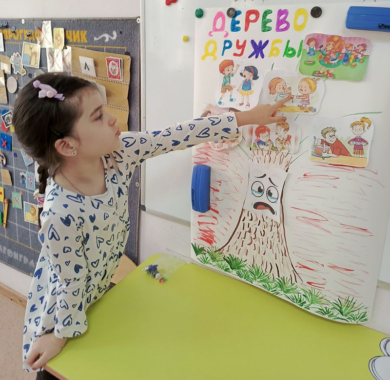 В ходе занятия мы обсудили различные ситуации и поговорили о хороших и плохих поступках. Каждый ребёнок смог поделиться своими добрыми делами, которые он совершил, будь то помощь родителям, забота о друзьях или другие милые поступки.