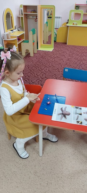 Пластичность материала и объемность изображаемой формы позволяют дошкольнику овладеть некоторыми техническими приемами в лепке скорее, чем в рисовании. Например, передача движения в рисунке является сложной задачей, требующей длительного обучения. В лепке решение этой задачи облегчается. Ребенок сначала лепит предмет в статичном положении, а затем сгибает его части в соответствии с замыслом.