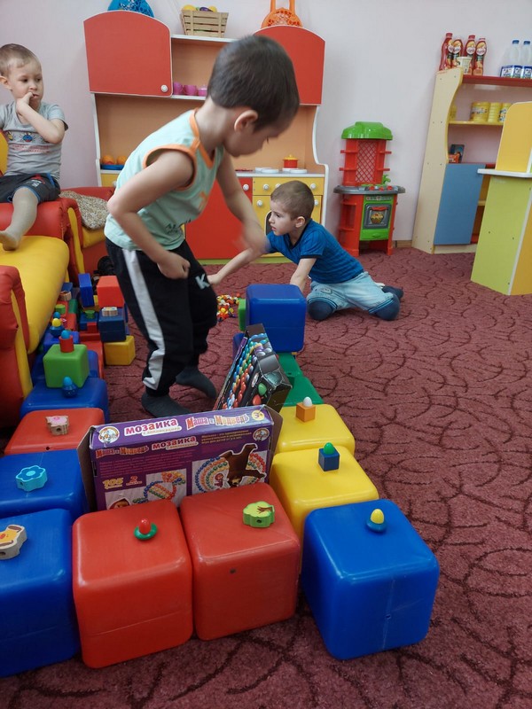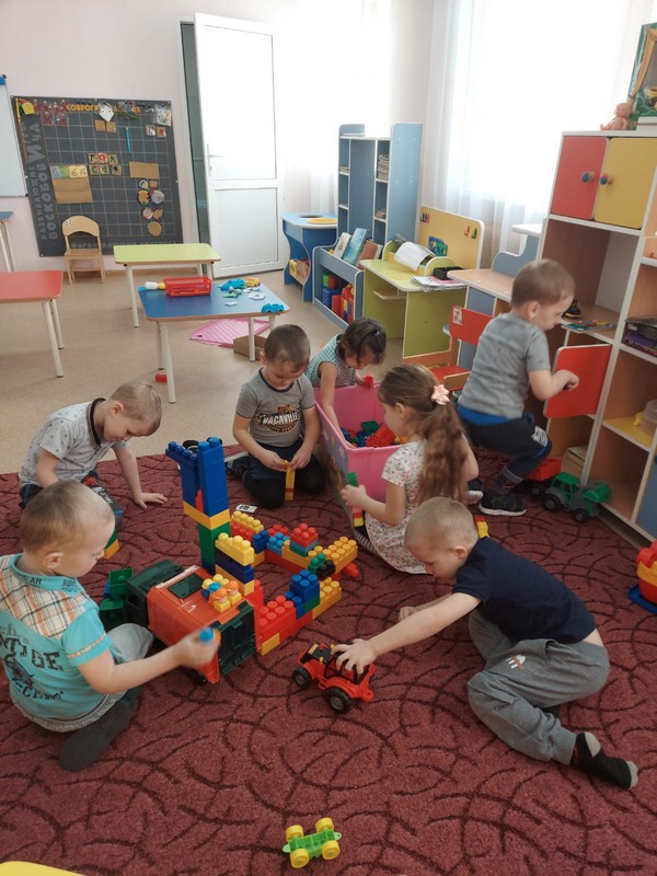 На своих занятиях по конструированию педагоги использую разные виды строительного материала: конструктор «Лего», большие пластмассовые кубики и деревянный строительный материал. Из больших пластмассовых кубиков малыши строят «дорожку» для машины, из конструктора «лего» «башни» и разных «животных». Также детям очень нравится играть с деревянным строительным материалом.