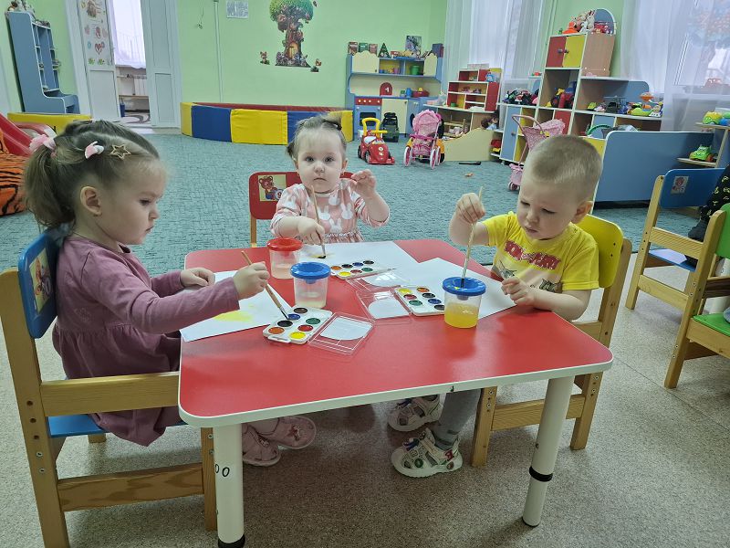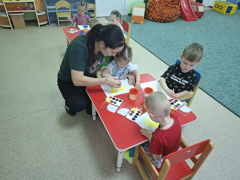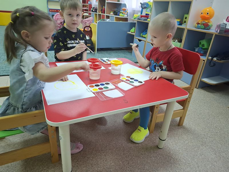 1.Образовательные: Способствовать формированию умения передавать в рисунке цветовым пятном образ солнца, сочетать круглую форму с прямыми линиями, располагать рисунок в середине листа. Закреплять умение правильно держать кисточку, снимать лишнюю каплю краски о край баночки.