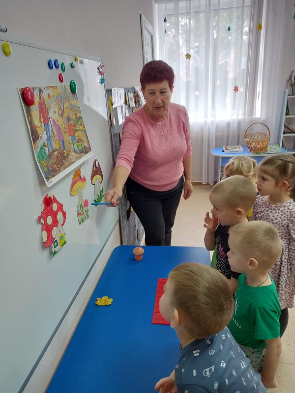 Цель занятия по лепке на тему «Грибы» — развитие любознательности, инициативности, самостоятельной изобразительной деятельности детей (изобразительные, технические и композиционные умения) в процессе создания композиции из пластилина.