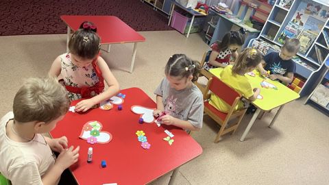 - закреплять знания детей о празднике «День Матери», учить работать с цветной бумагой, пользоваться клеем, располагать цветы в центре на открытке.