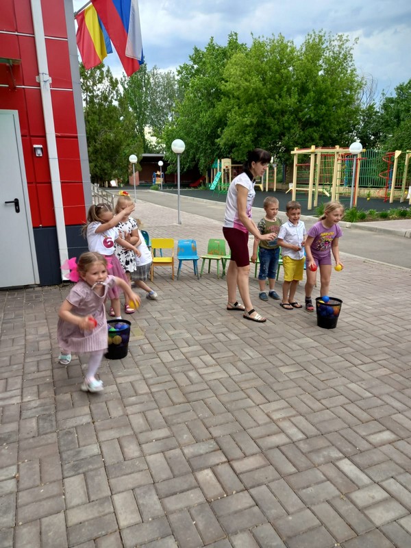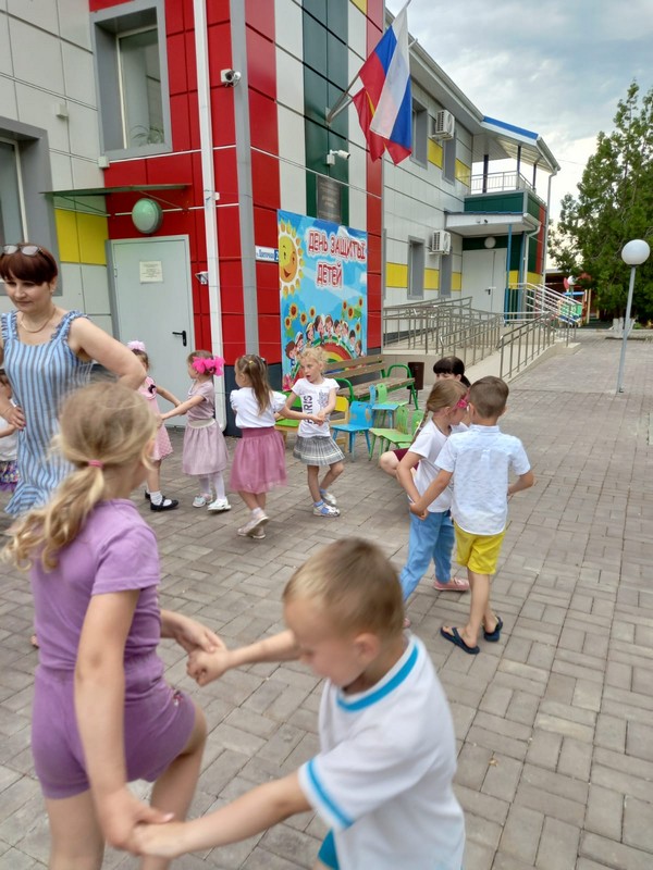 Радостно, звонко, тепло и красочно прошёл главный праздник детства – День защиты детей в нашем детском саду. Все педагоги старались сделать так, чтобы этот праздник надолго запомнился детям. Мы постарались в этот день создать праздничную атмосферу и порадовать детей весёлыми играми, песнями, плясками.