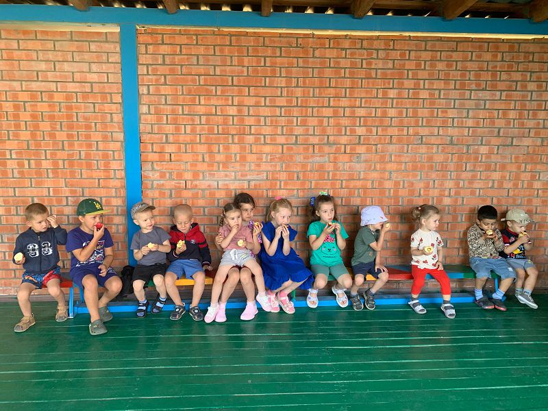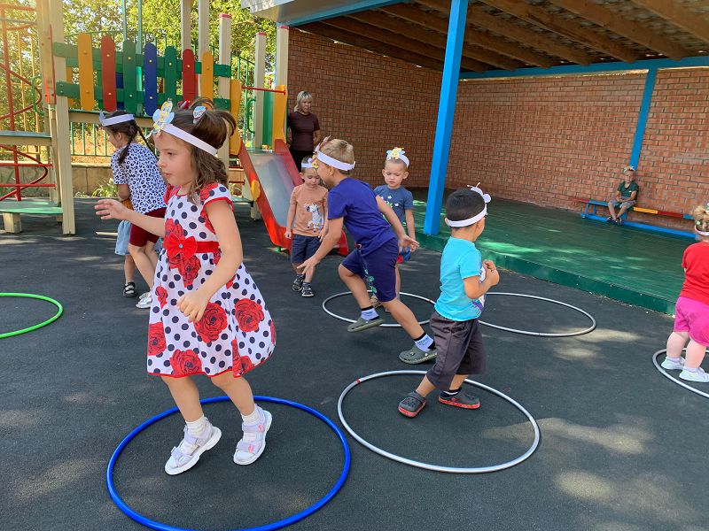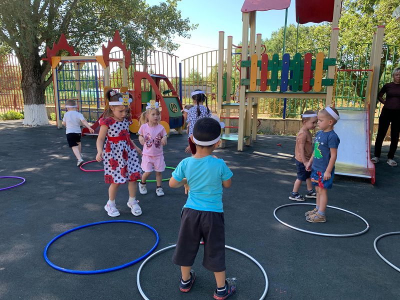 На празднике ребята весело играли в разные игры и даже побывали пчелками. А ещё они угощались спелыми и сочными яблоками.