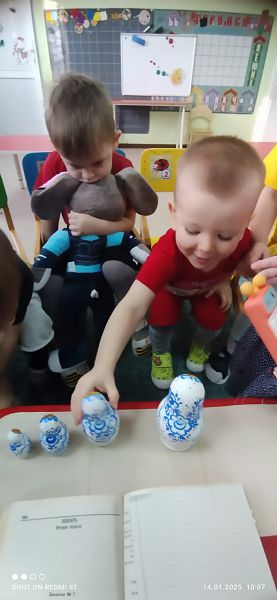 К малышам "Солнечные лучики" приходили гости матрёшки. Детям было очень интересно рассматривать их, особенно когда из большой матрёшки доставали чуть меньше.