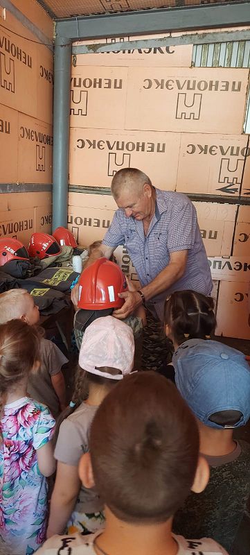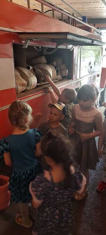 Как выглядят пожарные рукава и другие, столь нужные спасателям инструменты, необходимые при пожаре, рассказал об их назначении. Дети увидели спасательные аппараты, которые огнеборцы используют в задымленных местах. Закрепили знания о том, как надо вести себя при возникновении пожара, правила пожарной безопасности и поведения. Как правильно набирать номер телефона и сообщать о пожаре. Ребятам даже разрешили посидеть в пожарной машине. Там много сидений. Дети узнали, сколько человек выезжает на такой машине в случае пожара.