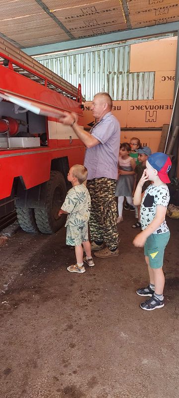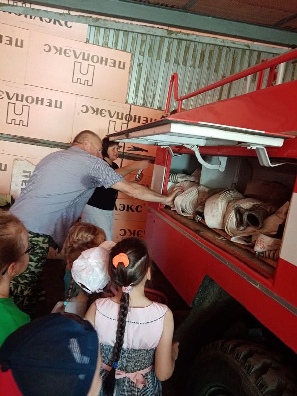 Наши воспитанники побывали в гостях у пожарных. Сотрудник радушно принял ребят и организовал познавательную экскурсию. Веселым гулом ребячьих голосов наполнился ангар, где находилась пожарная машина. Сотрудник пожарной службы показал, как выглядит пожарная машина изнутри, где находится бак, который заполняется водой, какими приспособлениями пользуются пожарные.